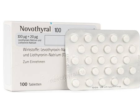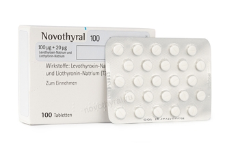 Как другие лекарства воздействуют на Новотирал?Ионообменные смолы, понижающие уровень липидов в крови (холестирамин, колестипол) ограничивают абсорбцию левотироксина/лиотиронина в организме. Потому Новотирал стоит пить за 4-5 часов до этих лекарств.